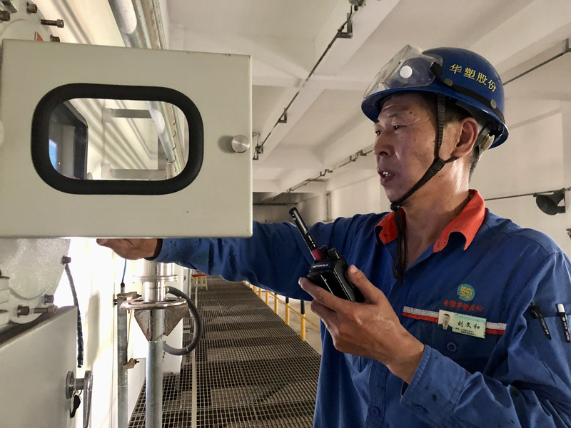 “劉師傅給我最大的印象就是對待工作的認真勁,他每天都是把工作做細、做完整才下班。2012年到現在,十年如一日!”華塑股份能工巧匠趙聯波和筆者說。走進燒堿車間合成工序,劉文和正在巡檢,一手拎著扳手,確認每道卡口和螺栓;一手握著報警儀,保持警惕,發現異常立即采取措施。“華塑對設備安全管理的嚴和規范,總會讓我有種重回軍營的熟悉感,在這樣的企業工作很有安全感。”部隊的專業訓練造就了他工作的執著和嚴謹,無論是日常巡檢,還是停車后的設備檢修、開車前的排查管線、或是是后期設備的改造,只要是他負責的項目,他總會把工作當作初次接手一樣去干,監督、檢查、驗證……確保系統運行安全穩定。