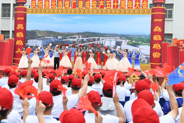隨后,慶祝該廠建成投產50周年文藝演出開始。友鄰單位鐵運處、臨渙選煤廠、神源煤化工同該廠職工一起,自編自演,先后帶來了舞蹈、詩朗誦、歌曲、戲曲聯唱等節目,給現場觀眾呈現了一場唯美震撼的視覺盛宴,展現了淮選50年發展的巨大成就,以及淮選人接力傳承,接續奮斗的精神面貌。