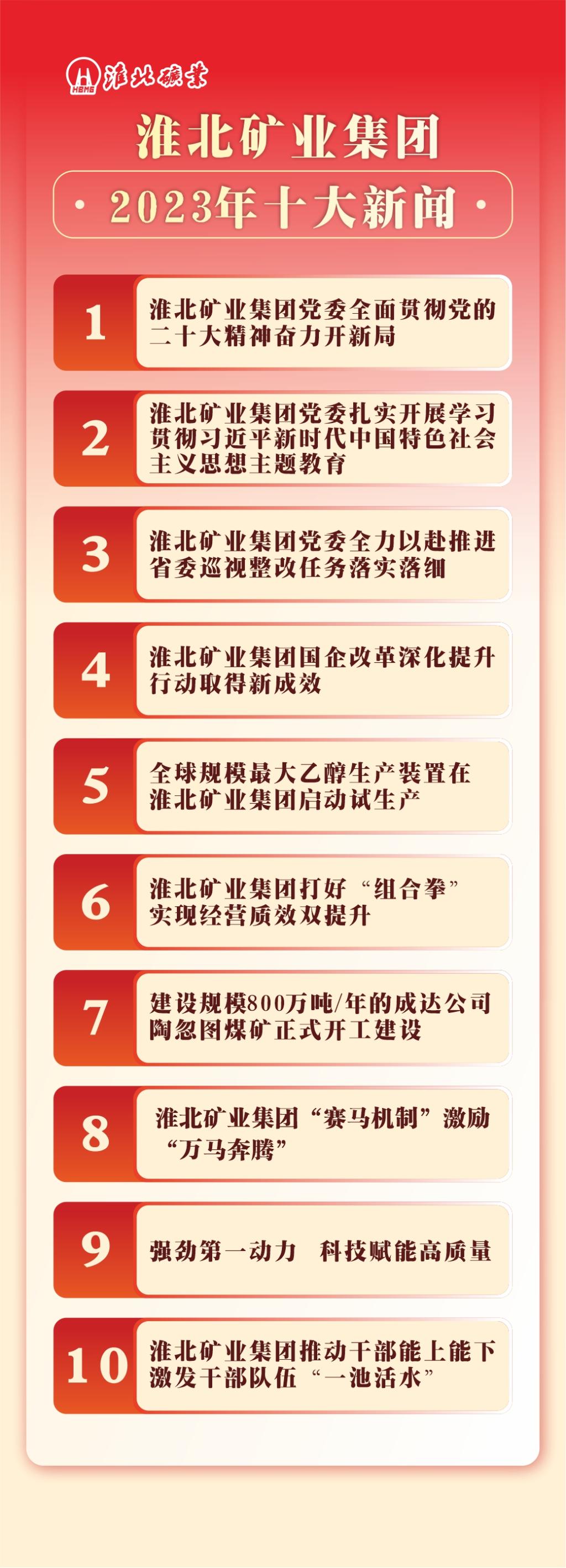2023年是全面貫徹黨的二十大精神的開局之年,淮北礦業(yè)集團(tuán)黨委把學(xué)習(xí)宣傳貫徹黨的二十大精神作為首要政治任務(wù),在全面學(xué)習(xí)、全面把握、全面落實上下功夫、求實效,著力引導(dǎo)廣大黨員干部職工把思想和行動統(tǒng)一到黨的二十大精神上來,把智慧和力量凝聚到黨的二十大提出的目標(biāo)任務(wù)上來,奮力譜寫高質(zhì)量發(fā)展新篇章。一年來,集團(tuán)黨委舉辦“黨的二十大精神輪訓(xùn)班暨中高層管理人員領(lǐng)導(dǎo)力素質(zhì)提升班”,開設(shè)“學(xué)習(xí)宣傳貫徹黨的二十大精神”“黨的二十大精神在礦區(qū)”宣傳專欄,開展“舉旗幟·送理論”等各類專題宣講1400余場次,推動黨的二十大精神入腦入心、落地生根,交出了一份精彩答卷。集團(tuán)領(lǐng)導(dǎo)班子先后7年在省委綜合考核中被評為“優(yōu)秀”,2022年度選人用人工作總體評價滿意度在21家省管企業(yè)中排名第一;集團(tuán)公司紀(jì)委連續(xù)4年在省紀(jì)委監(jiān)委考核中被評為“優(yōu)秀”;集團(tuán)公司先后在省委主題教育座談會、全省組織工作會、全省基層思想政治工作交流會上作發(fā)言;主題教育、省委巡視整改成效均被評為“好”的等次。企業(yè)發(fā)展逆勢而進(jìn),全年營業(yè)收入、利潤總額均創(chuàng)歷史新高,位居全省“賽馬”第一方陣。