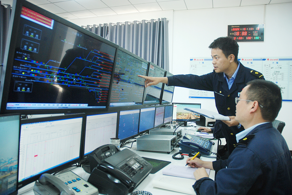 圖為臨渙電務(wù)段信號領(lǐng)工區(qū)領(lǐng)工長石磊查看信號聯(lián)鎖機(jī)房信號集中監(jiān)測系統(tǒng)運(yùn)行情況