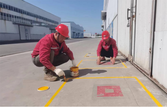 在AGV高架庫出入口,張勇、趙自衛(wèi)正在忙碌著。“這是干什么呢”“返庫位、出貨位標(biāo)志已經(jīng)模糊,導(dǎo)致探頭識別力減弱,為了使標(biāo)識更加規(guī)范鮮明,使貨位識別更加快速精準(zhǔn),我們要重新給予畫線?!敝灰娝麄兓ハ嗯浜希扔猛该髂z帶把黃線邊緣粘上,然后用黃色油漆刷新。
