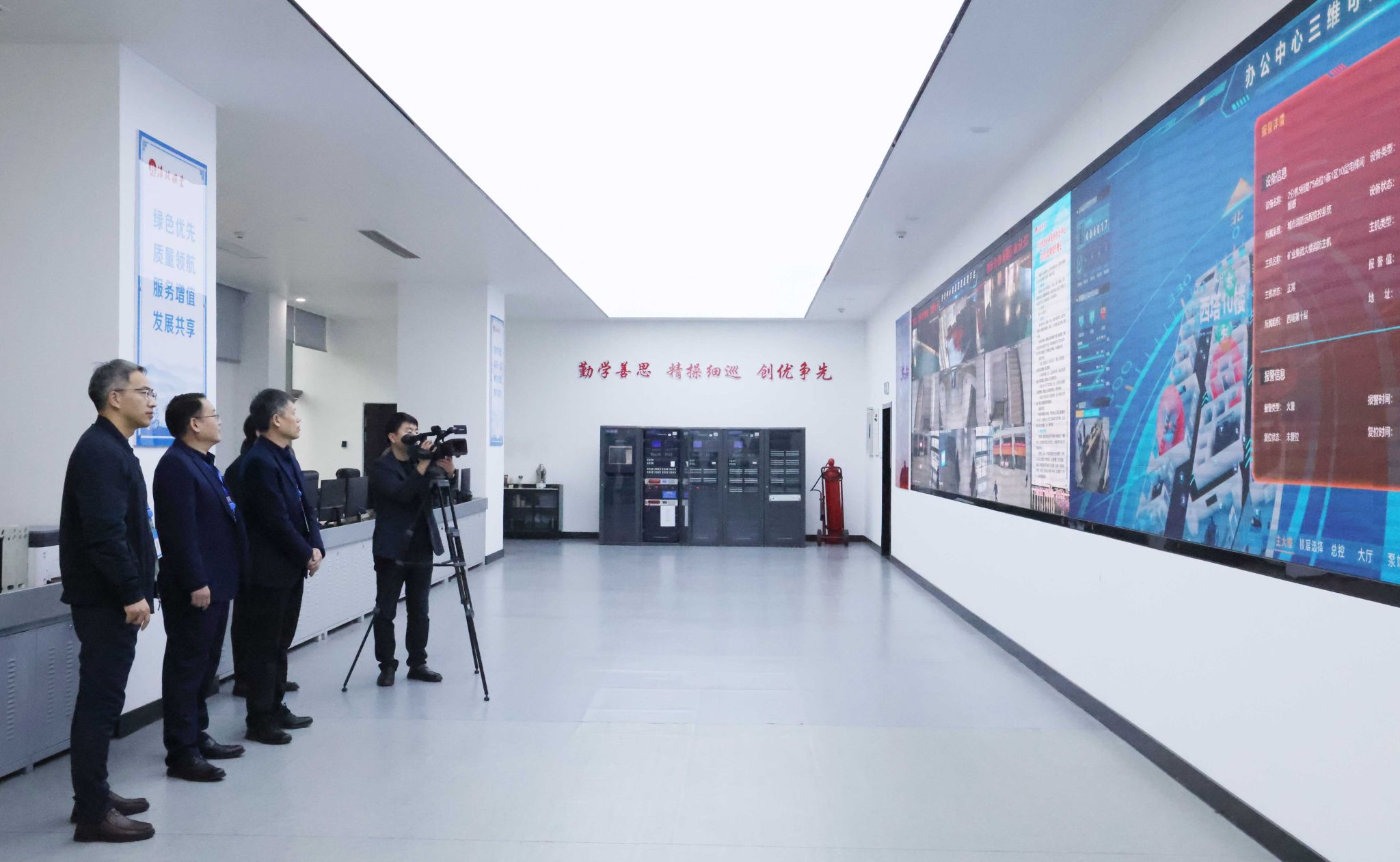 上午8時52分,演習(xí)正式開始。模擬火情設(shè)定在西塔10層,集控中心發(fā)現(xiàn)警報后,迅速啟動火災(zāi)應(yīng)急處置預(yù)案,同步上報值班領(lǐng)導(dǎo)、調(diào)派滅火組前往撲救,并模擬撥打119報警。隨即,樓內(nèi)應(yīng)急廣播系統(tǒng)啟動,播報火情信息,并下達(dá)全體人員通過步梯緊急疏散撤離的指令。